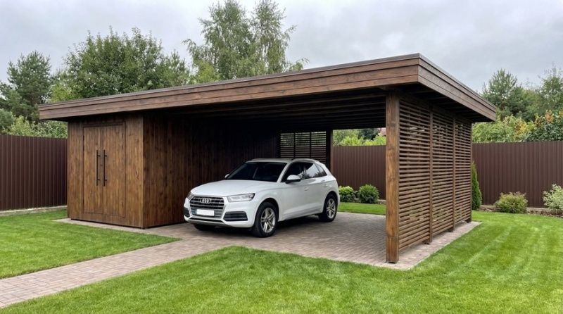 Навес для авто МЕРАНО из дерева для дачи