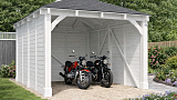 Участок возле собственного дома, дачи или любого другого частного домостроения не обходится без малых архитектурных форм. Удачным приобретением станет деревянный навес для мотоцикла. Компактная, но надёжная конструкция может быть выполнена как полностью автономным сооружением с классическими архитектурными формами, так и в виде пристройки к дому или хозяйственной постройке. Продуманное решение изящно впишется в планировку любого дачного или загородного участка, не загромождая пространство. Деревянный навес послужит отличным парковочным местом для одного или нескольких мотоциклов, освобождая полезное пространство в гараже или сарае. Для производства всех элементов используется только отборная древесина без малейших дефектов, прошедшая камерную сушку и глубокую пропитку антисептиками. Такому навесу не страшны высокая влажность и перепады температур - можно быть уверенным, что дерево не растрескается, не разбухнет и не покоробится даже спустя годы активной эксплуатации.